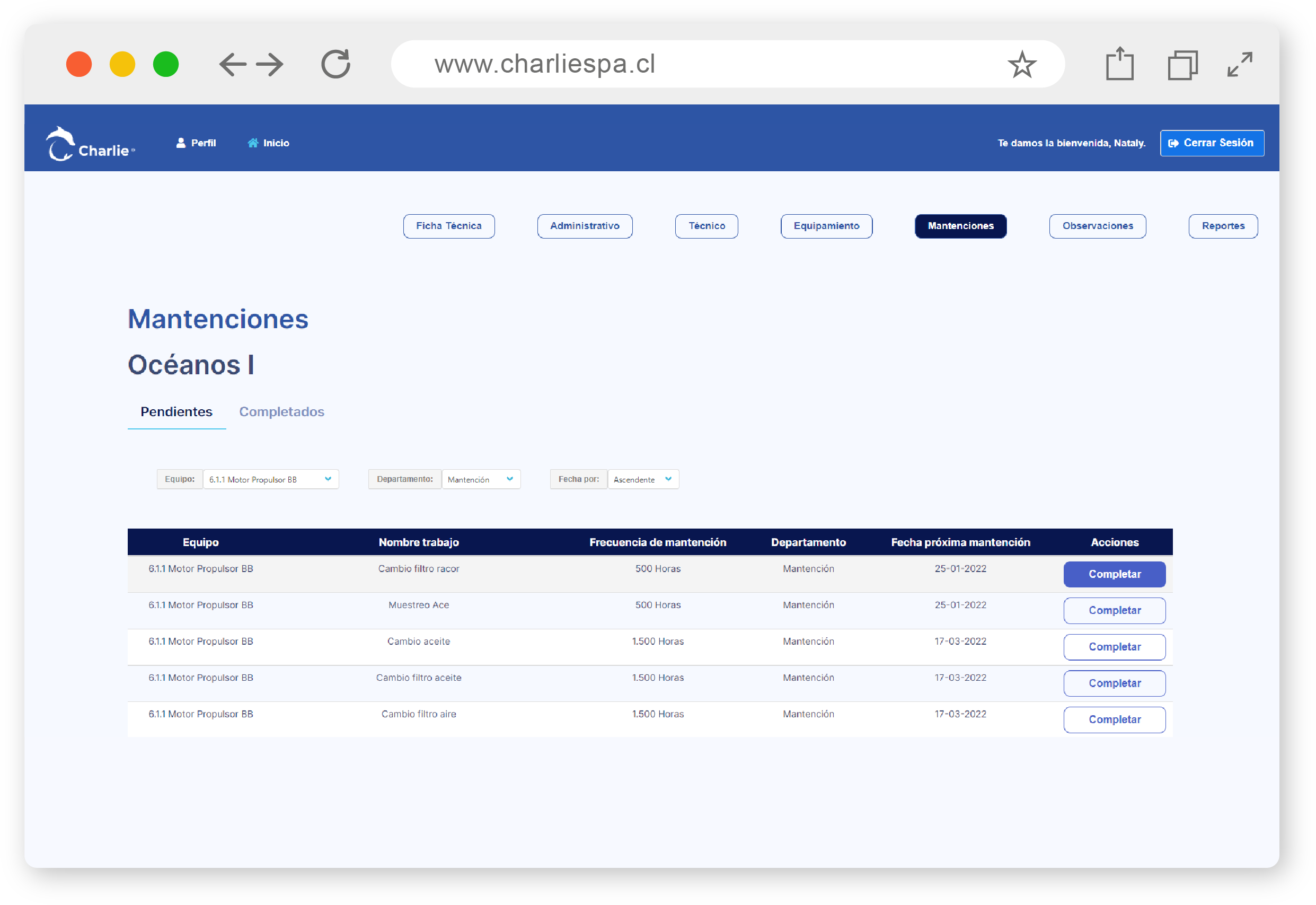 • Charlie, administra las mantenciones