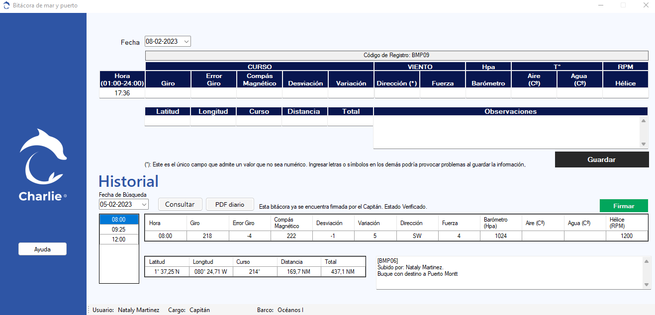 • Charlie, gestiona las bitácoras