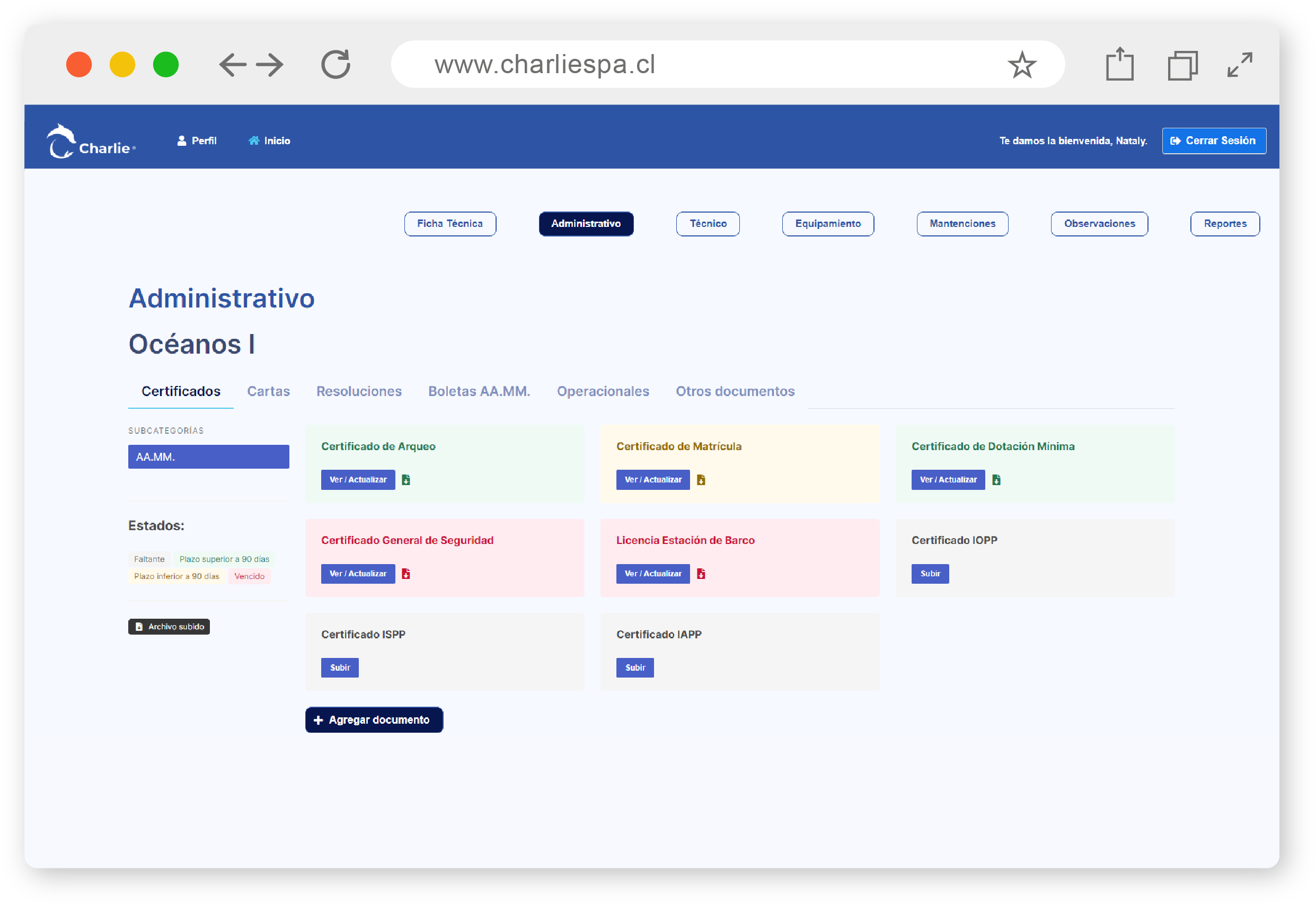 Charlie te indica cuáles son los documentos necesarios de acuerdo al tipo de embarcación o artefacto naval para cumplir con la normativa nacional e internacional.